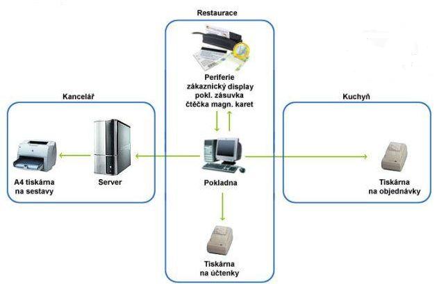 pokladní zásuvka, pokladní tiskárna, zákaznický displej, bankovní terminál atd.