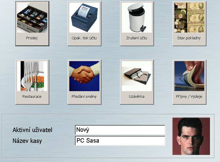 Na obrazovce je znázorněno hlavní menu programu Visual Host - client, klepnutím myši na vybraná tlačítka vstoupíte do další části programu. Zpět se vrátíte tlačítkem "Zpět" v příslušném obrázku.
